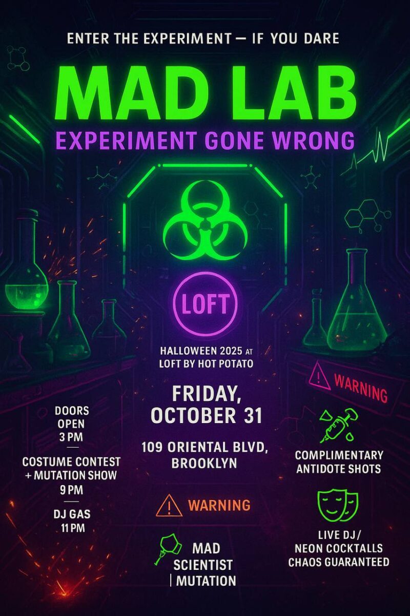 This Halloween, LOFT mutates into a neon laboratory of chaos ā part rave, part experiment, where glowing cocktails mix with bass and madness.